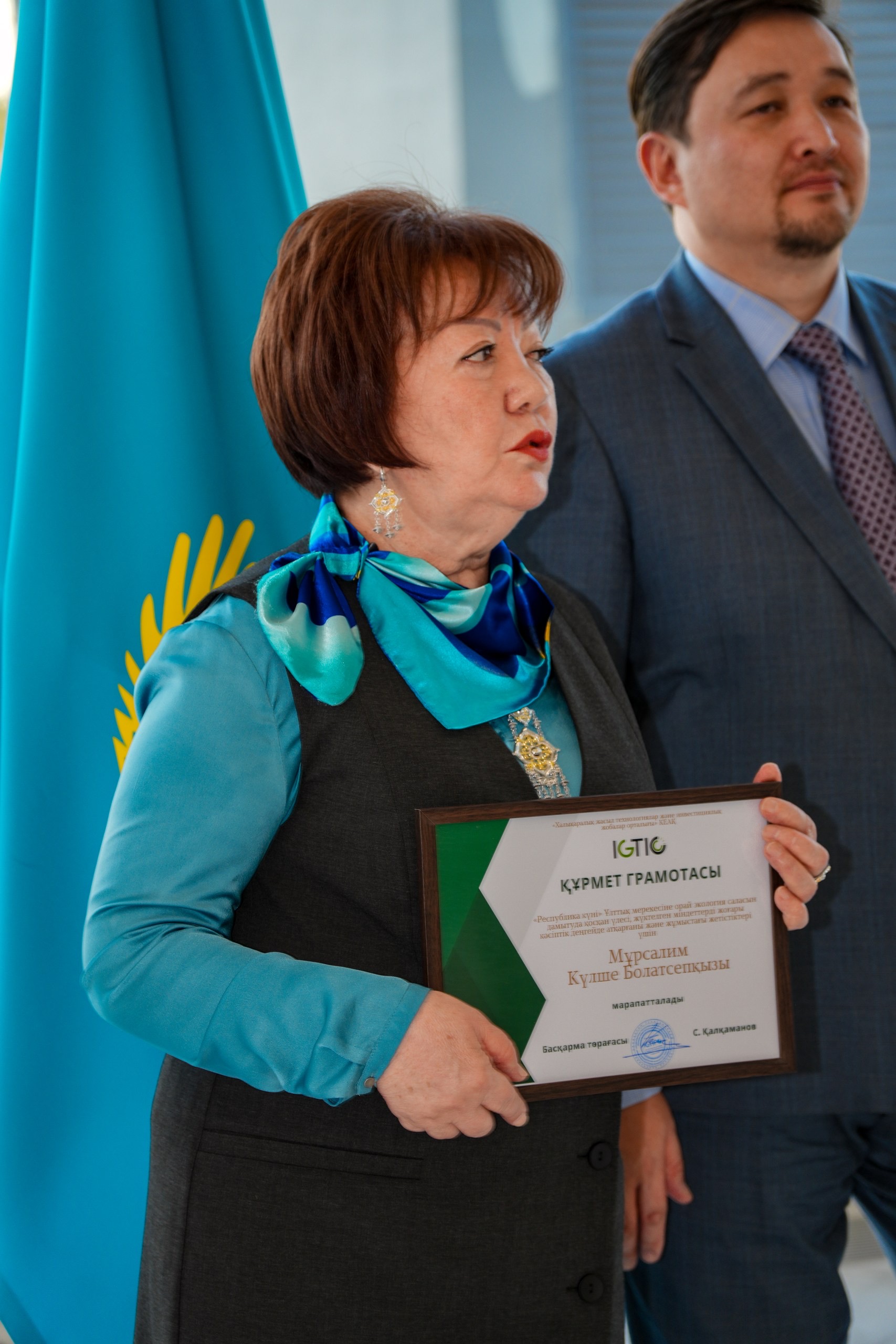 Астана, 24 октября — В преддверии Дня Республики Казахстан работники Международного центра зеленых технологий и инвестиционных проектов (IGTIC) были отмечены ведомственными наградами и почетными грамотами от компании за высокий профессионализм и вклад в развитие экологической отрасли страны.