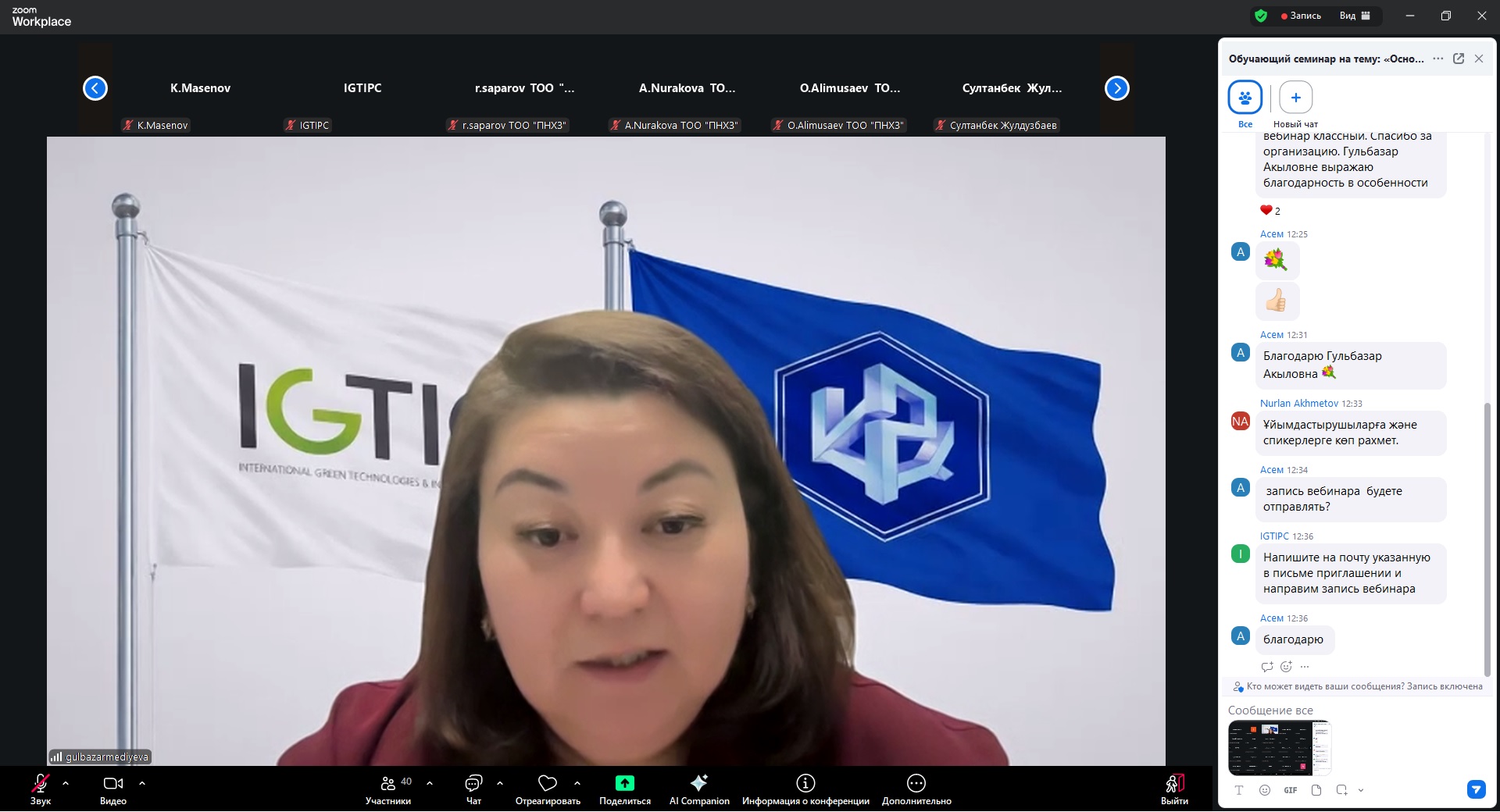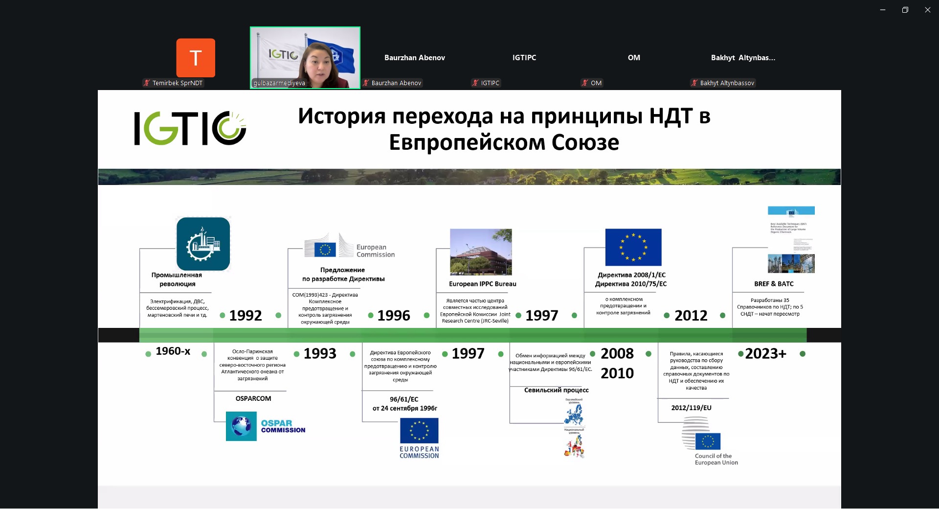 Астана, 19 декабря 2025 года – Работники IGTIC приняли участие в обучающем онлайн-семинаре на тему «Основы НДТ и ESG-подходы» для представителей акиматов и промышленных предприятий. Мероприятие направлено на исполнение рекомендаций, озвученных по итогам Правительственного часа на тему реализации Экологического кодекса Казахстана, в части стимулирования привлечения «зеленых» инвестиций и расширения практики применения наилучших доступных техник (НДТ) в промышленном секторе.